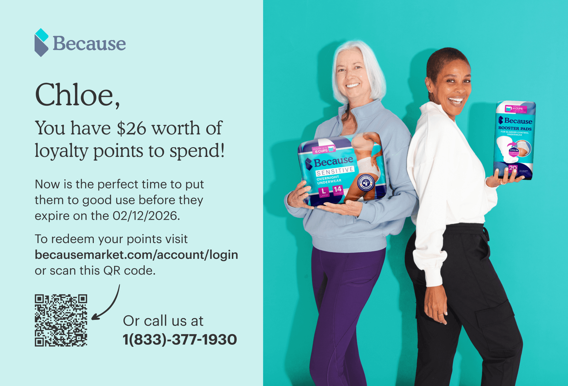 Using Paper Run’s Klaviyo and Bubblehouse integrations, the Because Market team was able to easily build an automated flow that sent direct mail to customers whose points were about to expire and who couldn’t be reached through any other channel.